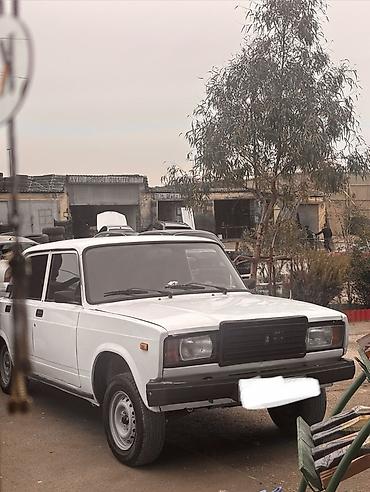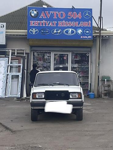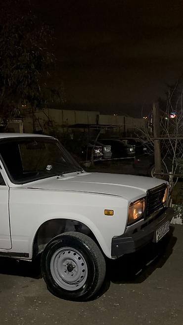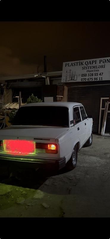 VAZ 2107, ağ rəng, sedan kuzov. Klassik dizaynlı, arxaötürücülü model.