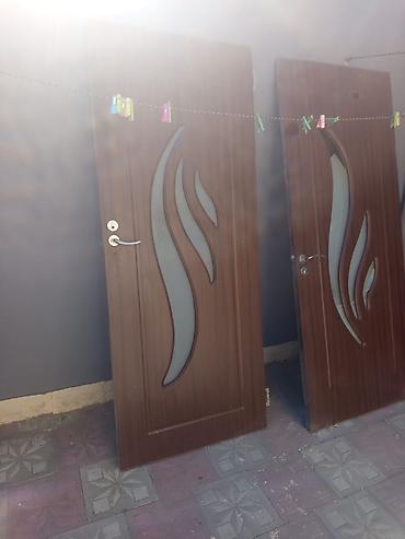 Ağac dekorlu iki ədəd qapı dəsti - Material: taxta teksturalı