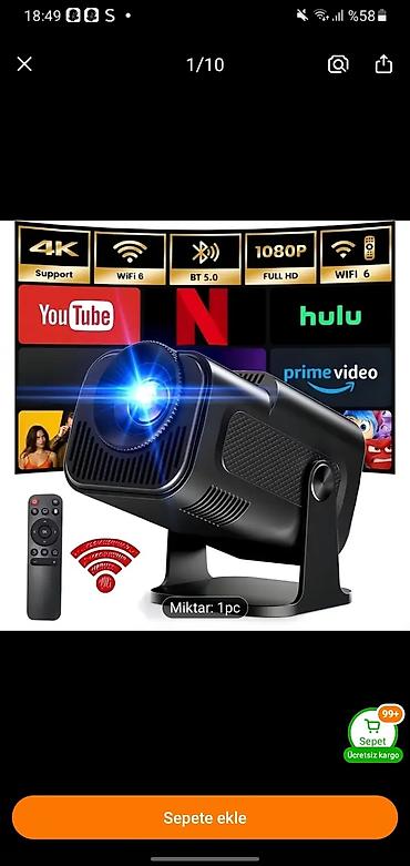 Vatsapda 0554289090 əlaqə saxlaya bilərsiz catdırılmada var ödənişli son model Smart Proyektor – Wi‑Fi 6, Bluetooth 5.0, Full HD 1080P, 4K dəstəyi