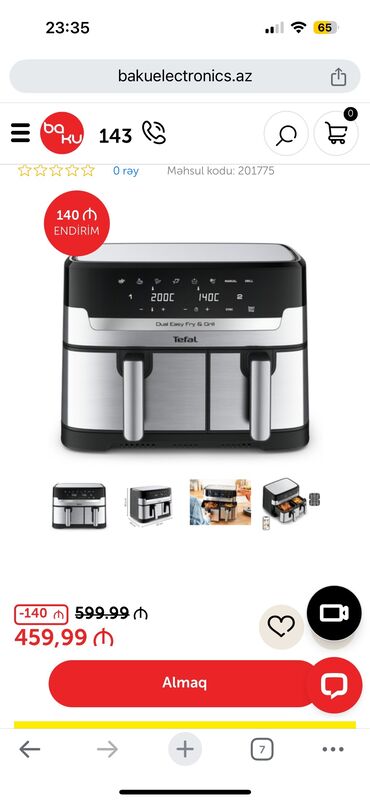 Fri , naggets bişirən aparat Fri ,naggets ,toyuq bişirən aparat Əla vəziyyətdədir 1,5 kq məhsul bişirmək olur. Tefal firmasıdır
