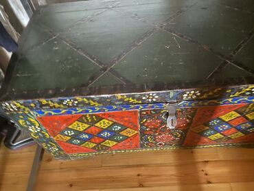 Rəngli naxışlarla bəzədilmiş taxta sandıq - Material: tam taxta (iç
