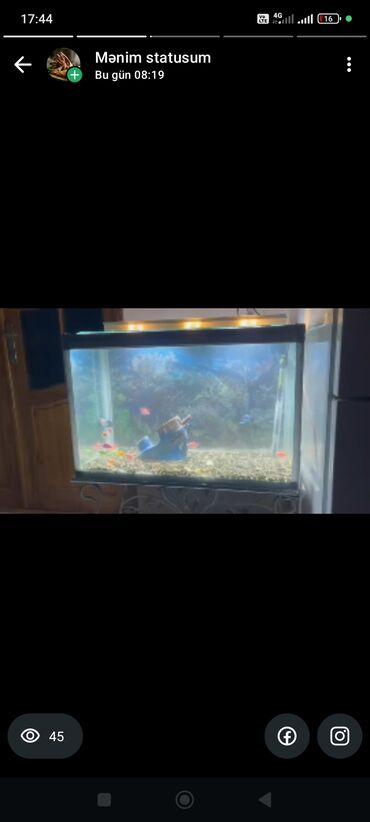 Akvarimu 100 manata almışam 1 heftedir çox qeşengdir.İçində 9 balıqla satıram 100 manata çox ucuz.Aşaqı yeri yoxdur