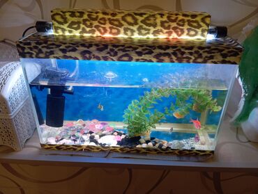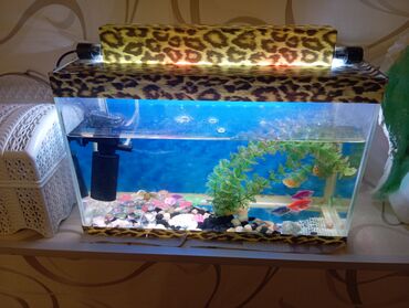 - Dekorlar: süni su bitkisi, müxtəlif dekorativ daşlar və çınqıllar.