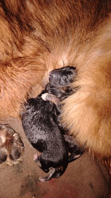 - Ana: uzun tüklü Alman çoban iti (qara-qonur rəng), mehriban və sakit xarakterli.