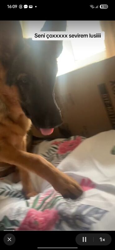 Alman çoban iti – gözəl quruluşlu, qara-qəhvəyi rəngdə, dik qulaqlı, güclü və çevik. Ağıllı, tez öyrənən və ailəyə bağlı cinsdir; həm mühafizə, həm də yoldaş it kimi uyğundur. Aktiv həyat tərzini sevənlər üçün ideal – gündəlik gəzinti və zehni məşqlərlə daha da parlayır. Uzun tük örtüyü sıx alt tükə malikdir; fırçalama və nizamlı qulluq tövsiyə olunur. Sosiallaşdırma və itaət təlimlərinə həvəslə qoşulur, sadiq və diqqətcil xarakter göstərir. Ev mühitinə tez uyğunlaşır, uşaqlarla və ailə üzvləri ilə mehribandır. dişi 1 yaş 7 aylıq