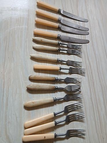 Antik bıçaq və çəngəl dəsti - Komplekt: 4 ədəd masa bıçağı + 10 ədəd