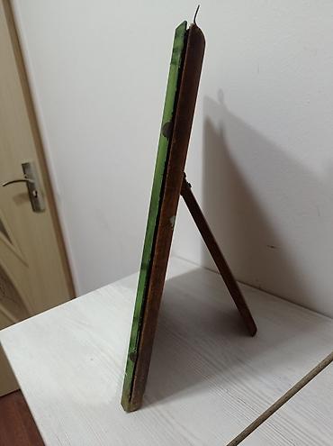 - Dizayn: yaşıl haşiyəli klassik kənar, metal tutacaqlar ilə şüşə panel taxta baza üzərinə bərkidilib