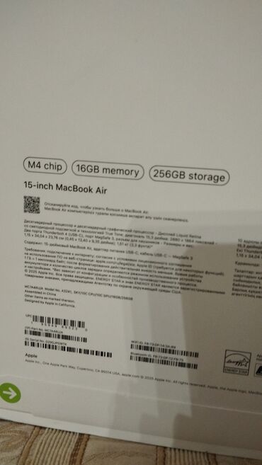 - Qutunun tərkibi: MacBook Air, USB‑C şarj kabeli, USB‑C güc adapteri (MagSafe 3)