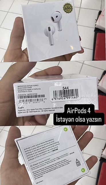 Airpods 4 ANC 🎧 Apple AirPods 4 with Active Noise Cancellation 🔊 Əsas xüsusiyyətlər Active Noise Cancellation (ANC) – küçə, təyyarə və şəhər səslərini azaldır. Transparency Mode – qulaqlığı çıxa...