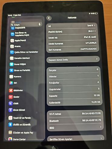 - Model: iPad 8 (Model nömrəsi: MYL92RK/A)