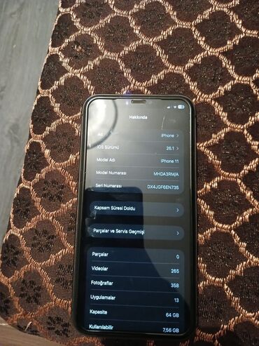 - Model: iPhone 11 (Model nömrəsi: MHDA3RM/A)