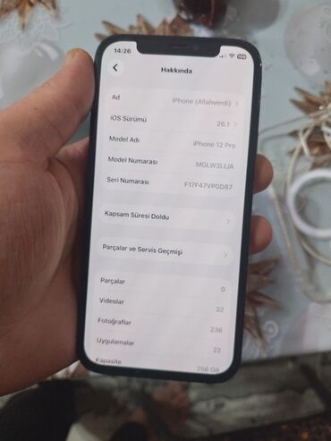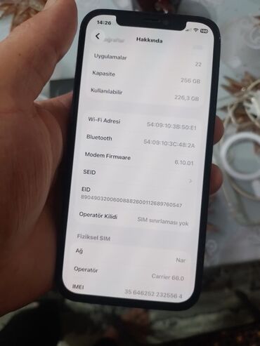12 pro satilir.ekran deyisilimelidir.iclouddadir.qalan herbir funksiyasi islekdir.batareta,kamera hershey islek qiymet sondu,isdiyen duzeltdirib islede biler.