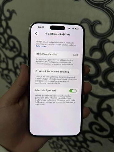 Apple iPhone 14 Pro - Model: iPhone 14 Pro (Model nömrəsi: MQ0G3HX/A) - iOS versiyası: 16.1 (şəkildə “iOS Sürümü 26.1” kimi görünür) - Rəng: tünd (şəkillərə əsasən) - Ekran: Dynamic Island, ProMot...