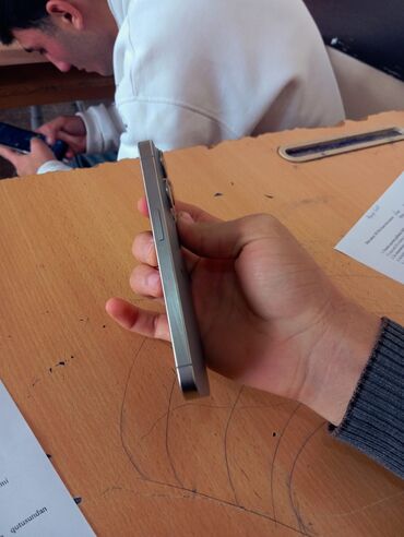 Rəng: boz/titan tonları. Ekran və kənarlar fotolarda göstərildiyi kimidir. iPhone 15 Pro-nun yığcam ölçüsü, güclü kamerası və A17 Pro çipi ilə gündəlik istifadə və oyun üçün ideal seçimdir.