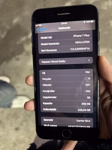 - Telefonun daxilində 327 video, 705 foto və 30 tətbiq görünür.