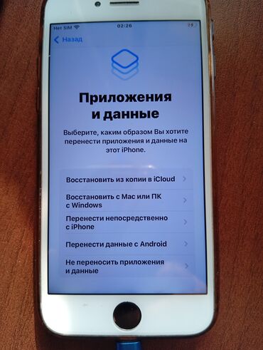 - Sistem: iOS ilkin quraşdırma ekranları görünür (rus dilində “Məlumat və məxfilik”, “Tətbiqlər və məlumatlar” bölmələri), iCloud-dan bərpa, Mac/Windows-dan bərpa, Android-dən məlumat köçürmə kimi seçimlər çıxır