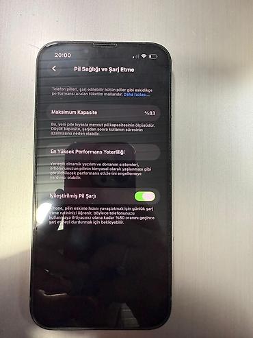Apple iPhone (ağ rəng) - Arxa tərəf: ikiqat kamera modulu, LED flaş - Ekran: Face ID dəliyi olan tam ekran panel - Batareya məlumatı: Pil Sağlığı bölməsində maksimum tutum 85% göstərilir; İyileşti...