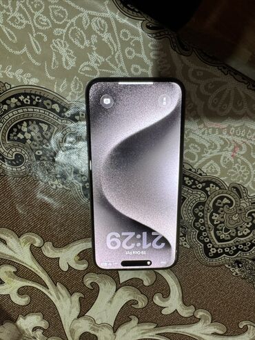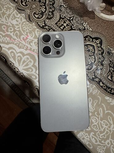 Məhsul: Apple iPhone (15Pro seriyası, gümüşü rəng) - Ekran: Dynamic Island kəsikli tam ekran, Face ID dəstəyi - Korpus: Mat gümüşü arxa səth, cilalı kənarlar - Kamera sistemi: Arxada üçlü kamera mo...