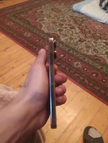 Məhsul: iPhone (Pro seriyası) – Açıq qızılı rəng Xüsusiyyətlər: - Rəng: Açıq qızılı (Gold) - Korpus: Mat şüşə arxa panel, parlaq metal kənarlar - Kamera sistemi: 3 linzalı arxa kamera bloku + LiDA...