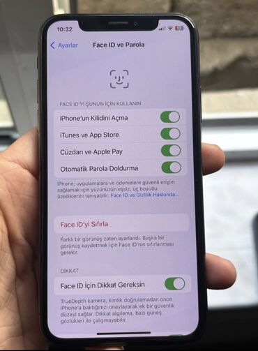 Telefon ideal veziyyetdedir ekran pil deyisib arxa susesinde cat var face id isleyir yaddas 64 gb pil 100 faiz bele x tapilmir real aliciyla razilasmaq olar