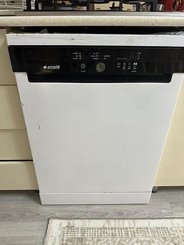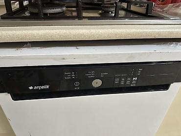 Ağ rəngdə Arçelik qabyuyan maşın. Qara idarəetmə paneli ilə təchiz