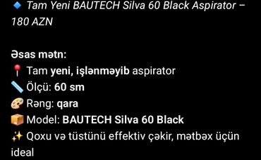 ✅ASPİRATORLAR ✅KREDİT YOXDUR!!! ✅️EVİNİZ ÜÇÜN BÜTÜN MƏTBƏX MƏİŞƏT TEXNİKASI ÜÇÜN MÜRACİƏT EDƏ BİLƏRSİZ ✅Verilən sifarişlərə gün ərzində çatdırılma quraşdırma ✅Stokda 110-120manatdan başlayan ...