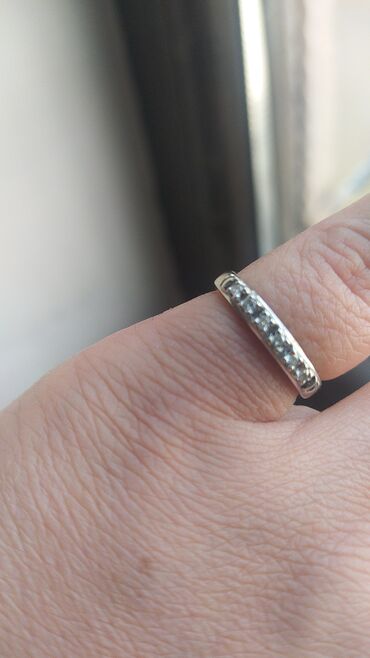 - Dizayn: zərif halqa, ön hissədə ardıcıl düzülmüş parlaq daşlarla (zirkon/brilliant kəsimli sintetik daş tipli) fully pavé üslubunda işlənmə.
