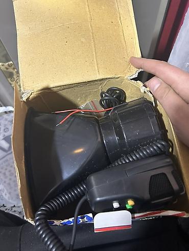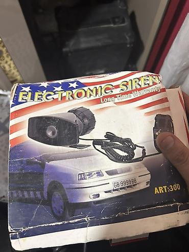 Avtomobillər üçün elektron siren dəsti. Qutunun üzərində “Electronic Siren – Long Time Warranty” qeyd olunub. Komplektə aşağıdakılar daxildir: