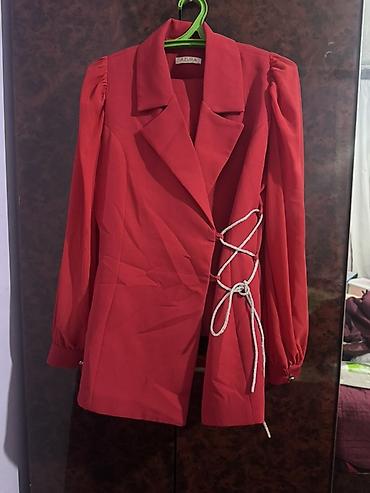 Qadın dəbli bleizer – Mangosteen Exclusive - Rəng: parlaq qırmızı - Ölçü: 40 (L) - Brend: Mangosteen Exclusive (etiketdə göstərilib) - Model: ikiqat düyməli, klassik döşəkağı yaxalı - Qol: 3/4 uzu...