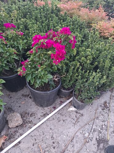 - Bouqenvillea (bujumbilia): Parlaq çəhrayı çiçəklənmə, trellar və pergolalar üçün dırmaşan bəzək bitkisi; isti, günəşli yerləri sevir.