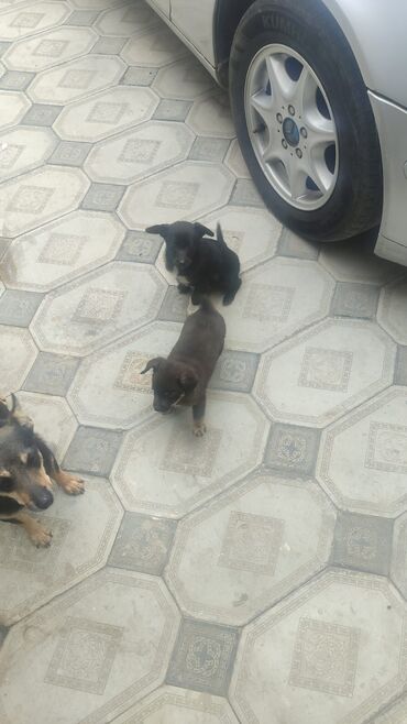 İki şirin balaca it balası - Cins: Yerli çoban tipli (qarışıq) - Rənglər: - Açıq krem rəngli, qara maskalı üz - Merl naxışlı boz-qara qarışıq - Qulaqlar: kəsik (fotoda görünür) - Xarakter: ço...
