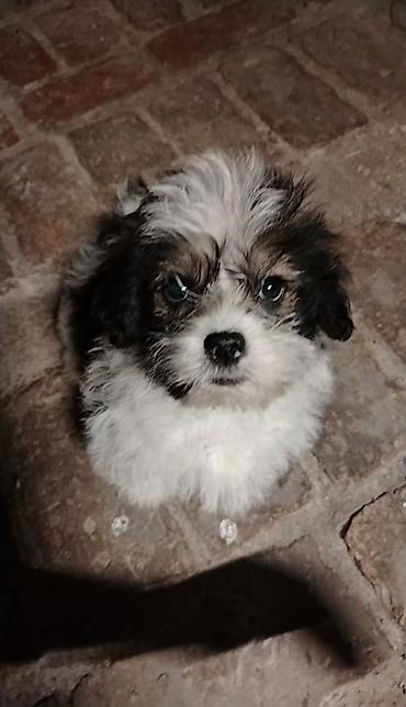 Miniatür, tüklü köpək balası - Cins: Kiçik ölçülü dekorativ it (oyuncaq tipli) - Rəng: Qarışıq qəhvəyi/şokolad tonları, sinə və pəncələrdə açıq rəng hauzları - Tük tipi: Yumşaq, sıx və qıvırcıq; a...