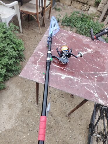 Balıqçılıq dəsti – teleskopik qamış + fırlanan çarx - Teleskopik balıqçı qamışı: yığcam korpus, qara rəng, alüminium-qırmızı armatur hissələri. Uc hissəsi üçün qoruyucu başlıq və halqa qoruyucusu ...