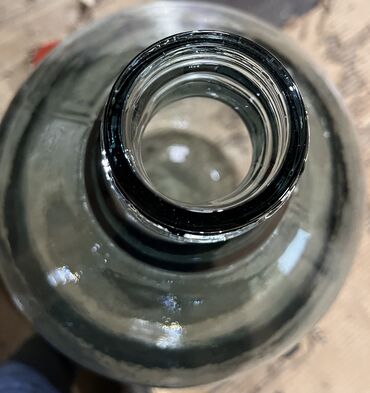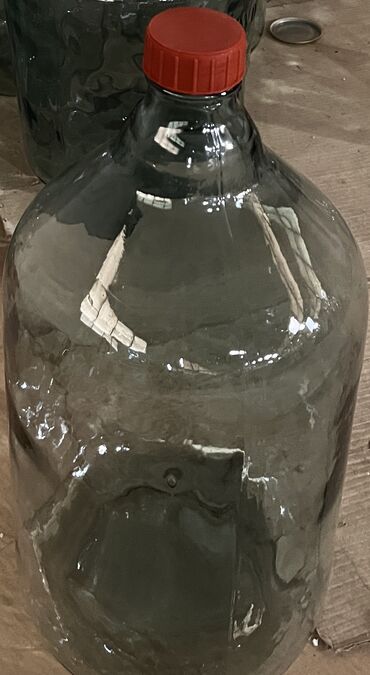 Şüşə damacana – böyük tutumlu - Material: qalın, şəffaf şüşə - Forma: geniş dibli, dar boğazlı damacana - Ağız ölçüsü: geniş boğaz, vintləməklə bağlanan qapaq üçün uyğundur - Qapaq: qırmızı plasti...