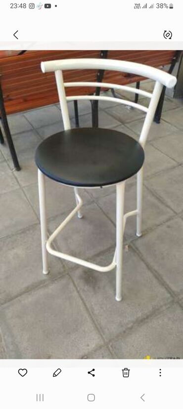 - Ölçü təsviri (təxmini görüntüyə əsasən): Hündür masa; oturacaqlar bar hündürlüyündə, dairəvi oturacaq