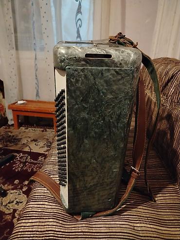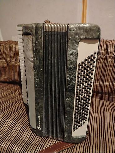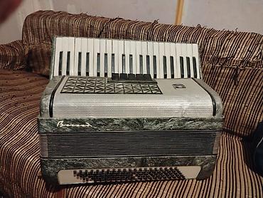 Akkordeon – klavişli və bas düyməli - Tip: Klavişli akkordeon (piano klaviaturası) və sağ tərəfdə bas/akord düymələri - Korpus: Qəhvəyi-mərmər fakturalı örtük, metal yan qapaqlar, klassik keçə kör...