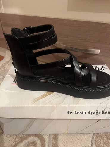 Deri ayaqqabi (PU) Yapon üslubda qara dəbli sandal Amerikanin Shein online magazadan alinib Hec geyinilmiyib razmeri uygun olmadigina gore
