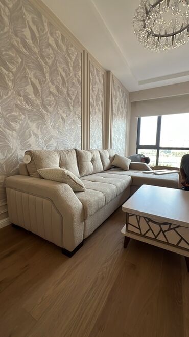 Bej rəngdə L formalı künc divan endirim ola biler - Klassik və minimal dizayn: açıq bej ton, zərif dekor tikişləri, qalın və düz xətlər. - Sol tərəfdə geniş şezlon hissəsi (uzanmaq üçün rahat). - ...
