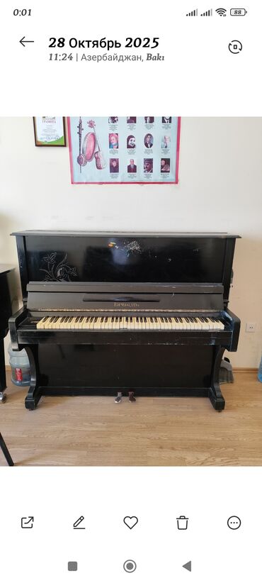 - Ev, musiqi məktəbi və məşq otaqları üçün. Alet biraz temir olunsa ela veziyyetde olacaq. Hal hazırda normal veziyyetdedir. Çəkicleri taxdalari salamatdır. klavisleri hamsi yerindədir.