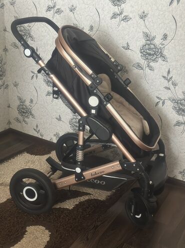 Uşaq arabası – innovativ dizaynlı, qızılı-qaranlıq (black/gold) rəng kombinasiya. Şassi üçtəkərli, manevr qabiliyyəti yüksəkdir: ön təkər fırlanan, arxa təkərlər iri diametrli və amortizasiya dəstə...