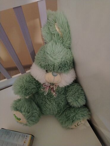 Şəkillərdə yaşıl plyuş dovşan oyuncağı ayrıca görünür.Dovsan hediye verilecek
