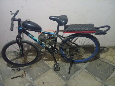 Benzin mühərrikli velosiped - Gövdə: mavi rəngli, şəhər/trek tipli velosiped çərçivəsi - Mühərrik: karbüratorlu 2T (iki taktlı) benzin mühərriki, çərçivəyə quraşdırılıb - Yanacaq sistemi: üst boru...