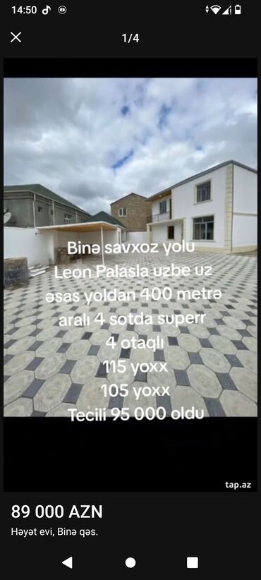 Bineqedi 4 otaq 120 kv 2 sotda.