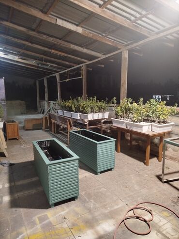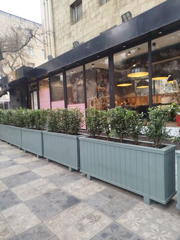 Açıq havaya uyğun dekorativ taxta gülbəçələr - Material: təbii ağacdan yığma konstruksiya, iç tərəfi suya davamlı örtük/plyonka ilə izolyasiya olunub. - Rənglər: qəhvəyi (ağac teksturalı), ağ, qar...