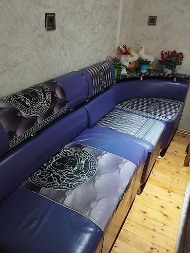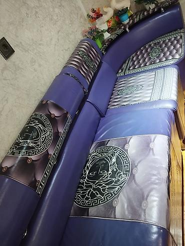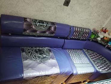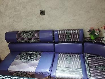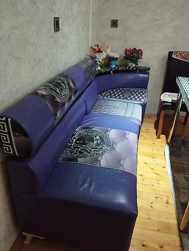 Bənövşəyi rəng palitrasında L formalı mətbəx/balaca otaq üçün künc divan.