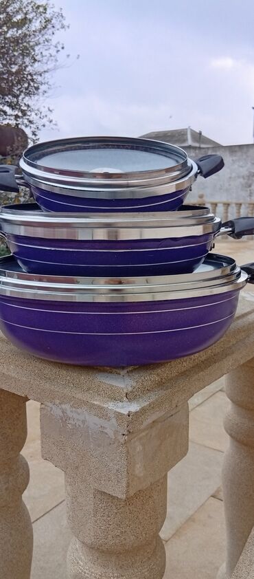 Bənövşəyi rəngli 3-lü tava/qazan dəsti