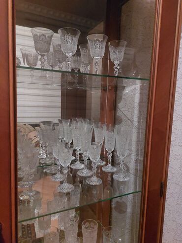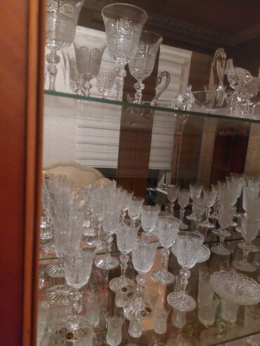 6 kicik bakal, 6 hundur bakal, 4 hundur agzi enli bakal, 4 hundur rumka , 2 eded 30 sm meyve qabi tomun temiz xrustal qablaridir. Hamisi biryerde 900azn vererem. Kəsma naxışlı kristal qədəh dəst...