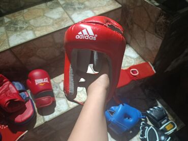 • Adidas baş qoruyucusu – qırmızı, açıq üzlü model, daxili yumuşaq astar, yan və aln hissələrində əlavə amortizasiya.