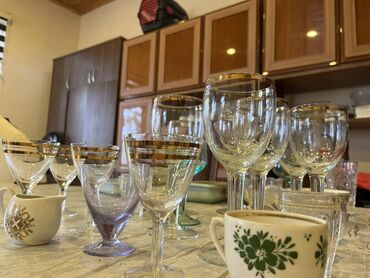 Qızılı naxışlı bədii şüşə dəst stekanlar 35 azn - yasil vazlar 50