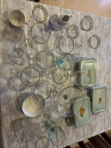 12ədəd kül qabı, 6ədəd qənd qabı, 25 ədəd nəlbəki, 5 ədəd çaynik altı, 5ədəd sadə qab. Qiyməti razılaşma yolu ilə